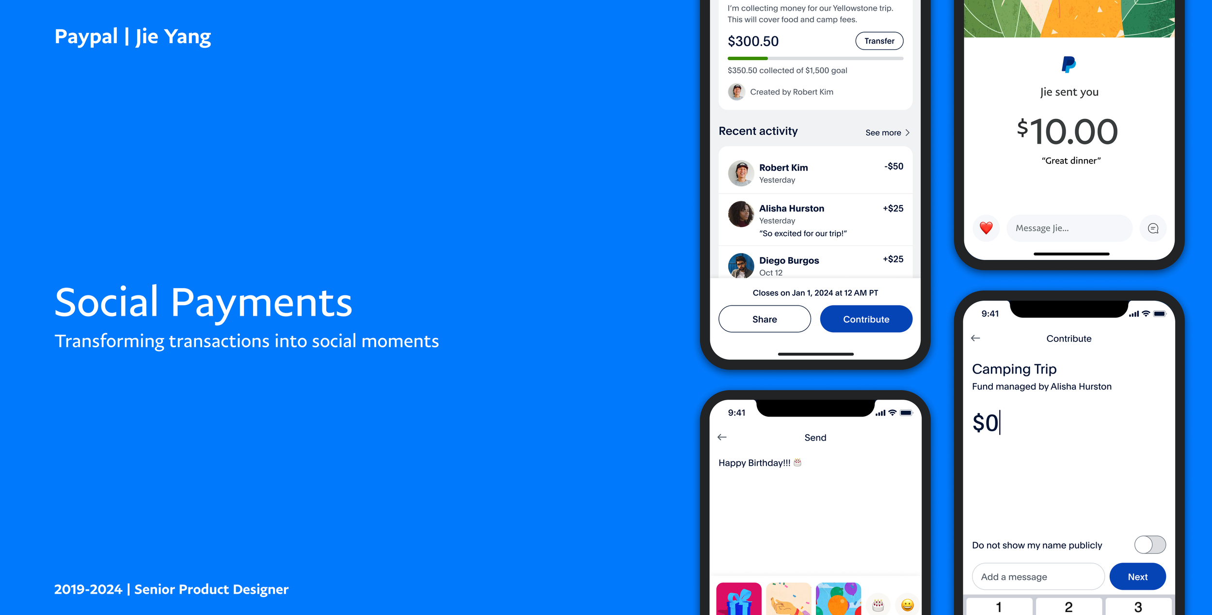 The work shown here represents shipped outcomes of a much broader exploration effort across social, messaging, and payment surfaces, all of which are accessible within the PayPal app or website, while much of the broader exploration remains internal due to confidentiality.
